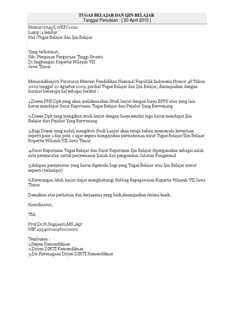 Surat pernyataan dari kepala pd yang bersangkutan bahwa pendidikan yang akan . Bersama ini kami mengajukan permohonan seleksi tugas belajar dari. Tidak sedang menjalani pendidikan atau tugas belajar. 19 sep 2008 | komentar : Belajar dan izin belajar kepada pegawai.